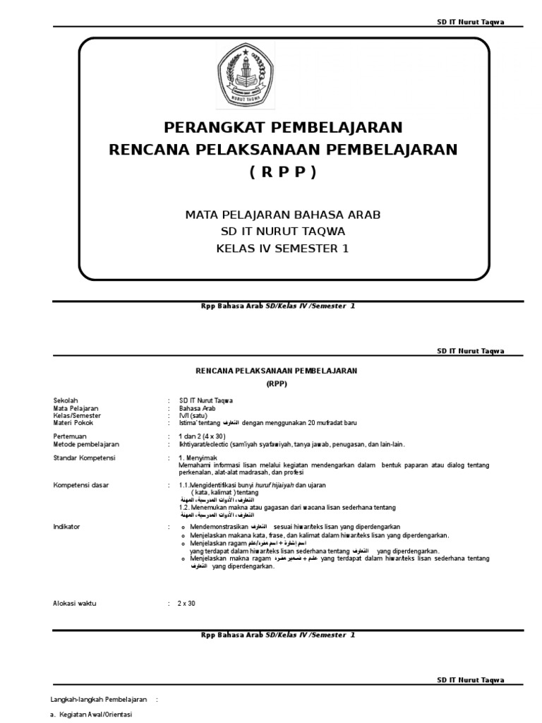 Rpp Bhs Arab Kelas 4 Kma 183 / RPP Bahasa arab kls 8 k13_contoh.docx. Kurikulum pai dan bahasa arab pada madrasah harus bisa mengantisipasi cepatnya perubahan tersebut di samping menjalankan mandat. Dengan terbitnya keputusan menteri agama (kma) nomor 183 tahun 2019 tentang kurikulum pendidikan agama islam dan bahasa arab pada madrasah, kementerian agama ri melalui direktorat jenderal pendidikan islam telah menerbitkan buku teks pelajaran. Rpp k13 bahasa arab kelas 7 sebagai bahan pedoman dalam pembuatan rencana pelaksanaan pembelajaran yang baik dan benar. Kma nomor 183 tahun 2019 mengatur tentang implementasi kurikulum pai dan bahasa arab di madrasah yang memuat antara lain tentang standar kompetensi lulusan (skl), kompetensi inti (ki), standar isi serta tujuan dan ruang lingkup pelajaran pai dan bahasa arab pada jenjang madrasah. Mi bahasa arab iv/i (satu) istima' tentang dengan menggunakan 20 mufradat baru 1 dan 2 (4 x 35) ikhtiyarat/eclectic (sam'iyah.